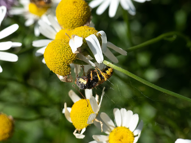 As i approached an area of Hemp Agrimony,a largish,brightly coloured and marked Digger Wasp flew past me and began nectaring and it soon became apparent it was,unbelievably a BeeWolf,a species i had not seen in Lincolnshire and not seen since i visited Minsmere in 2020.
